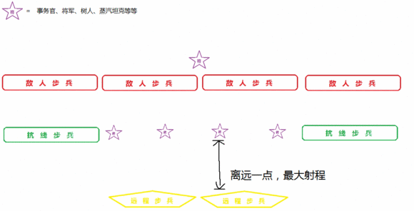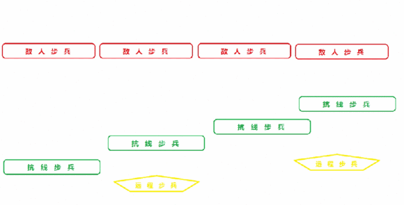 远程兵: 削弱敌人骑兵、削弱敌人射手、(集火秒巨兽、将领)、拉侧面突击