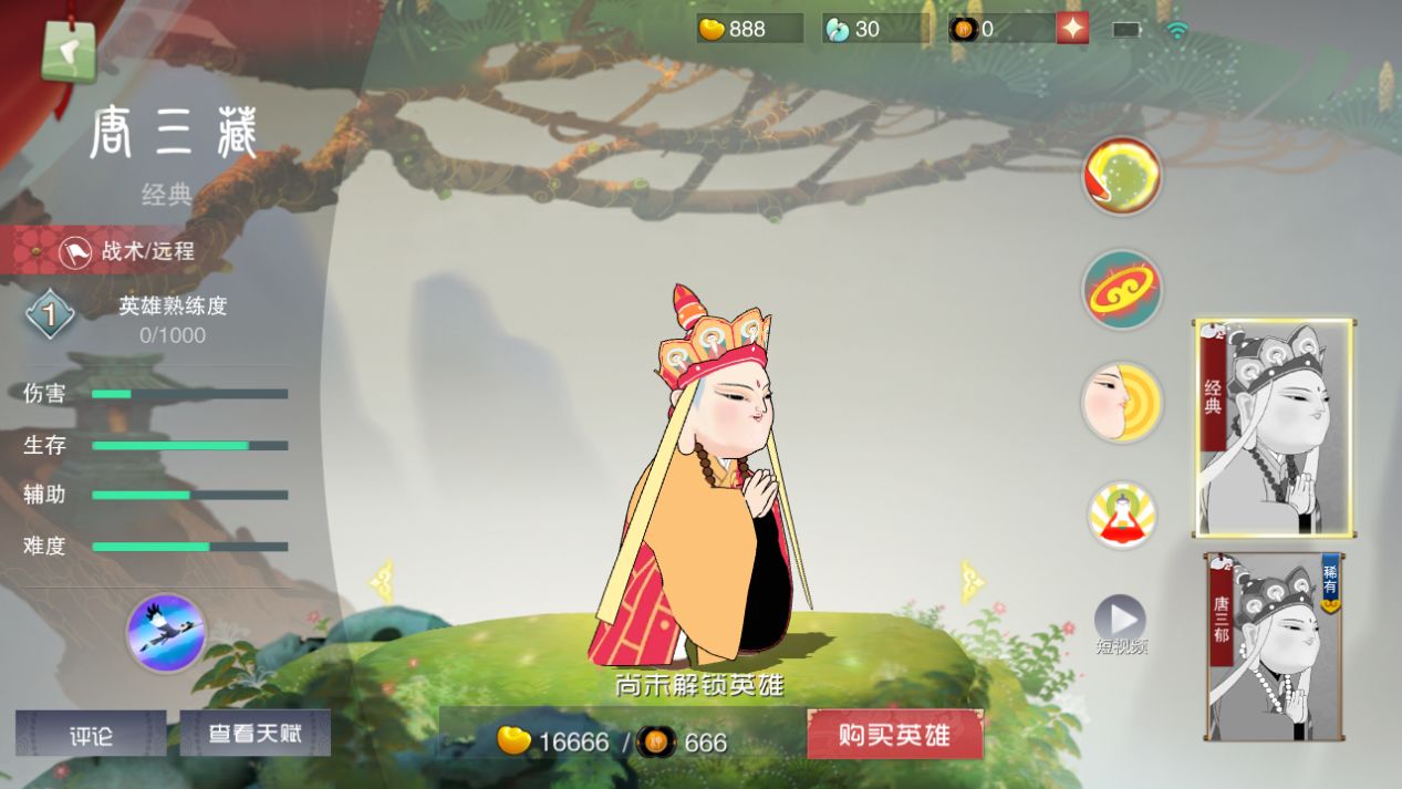 唐三藏是一名远程辅助英雄,这个英雄不仅恢复能力强,可以辅助加血,保命能力也大。唐三藏是一个比较好的辅助英雄。