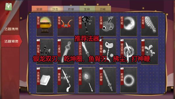 神仙大大可能会有疑问:我知道每个法器的功能,但不知道带哪几个怎么办?
