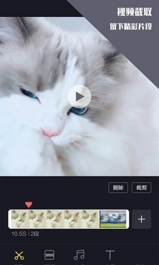 1.视频裁剪、视频拼接、视频字幕,多种视频制作功能满足你的视频剪辑要求2.转场、分割、快放、慢放、贴图、音乐剪辑,多种剪辑效果为你的视频增光添彩