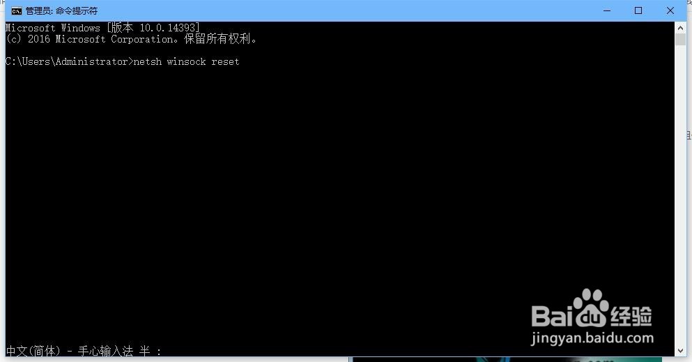 接下来我们继续输入“netsh winsock reset”这条命令会重置当前网络。