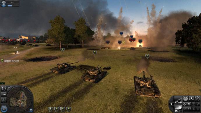 先说ARMOR(装甲部队)ARMOR是4种部队里比较难用和受牵制最大的部队,新人一定是先选ARMOR.ARMOR容易受到AIR牵制.本身火力不足(貌似ARMOR攻击力不高)只有Heavy Tank(重坦克)可以抵挡一下.其他是瞬间毙命.也没有有利的对空武器,所以有新人喜欢用Armored Transport(步兵装甲车),但被Heavy Tank耍起来是一会的事.