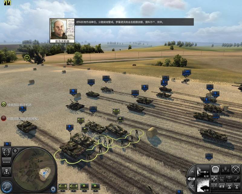 任务开始后共有8000点可供支配,空投5辆重坦、1辆中坦和2辆吉普,一轮突击打下位于地图西南面高地上的苏联前哨站,苏军会发起微弱反攻,守住后前往镇子南端,在那里和苏军坦克打上一阵拉锯战,注意维修,混战中可击毙苏军指挥官。摧毁镇中防御后占领战略点,苏军主要从北面和东面的桥梁上进行反攻,不久北面的桥梁被打断,我方可从东面桥梁过去,攻入东面苏军炮兵所在的高地,也就是锯木厂附近,将其炮兵悉数摧毁,占领那里的战略点,稍加防御后赶往东北面友军和苏军的战区,使用战术支援压制那里的大批苏军坦克部队,再和友军一起攻击中央区域的城镇广场,这里有不少苏军的直升机,可用吉普的穿甲弹对付,推进时要小心苏军的战术支援和炮火覆盖,我方应使用战术支援摧毁苏军在战略点上的防御,并在西岸空投2辆免费的迫击炮,压制河对面的苏军步兵,接着逐渐把坦克推向河岸,压制苏军所在的区域,在苏军反攻时投下空气燃烧弹,一举歼灭其主力,顺利完成此战役。