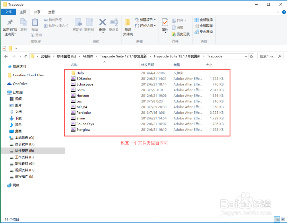 我都已经为大家打包整理好,大家只需要后面复制即可,我已经把10个插件都放在一个文件夹里面,命名文件名为Trapcode,这也是后期为大家方便安装。