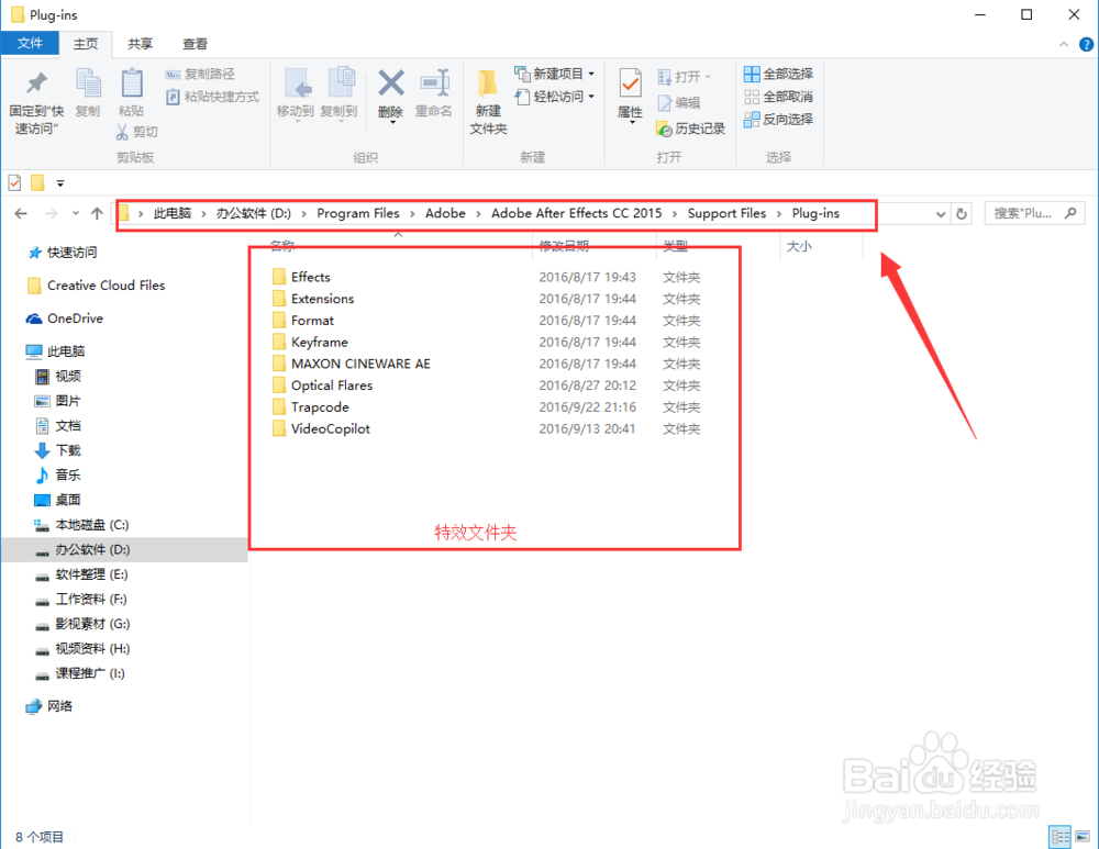 现在我们需要找到我们AE的安装根目录,一般默认都是在C盘,很多人应该不是安装在C盘里面了。都是安装在自己设置的盘符里面,我们需要找到Plug-ins这个文件夹,这个文件夹是放特效插件的文件夹,AE的外置插件都会放在这个目录里面,例如我的路径是:D:\Program Files\Adobe\Adobe After Effects CC 2018\Support Files\Plug-ins,所以这一步的内容就是找到Plug-ins这个文件夹。