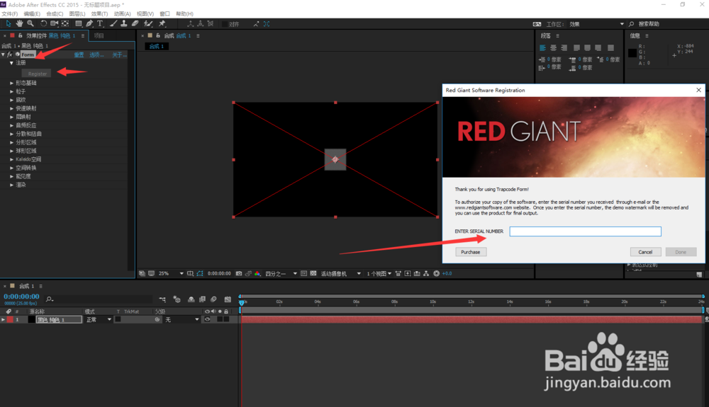 2、启动AE,调出Optical Flares,提示有机器的序号,拷贝此号。
