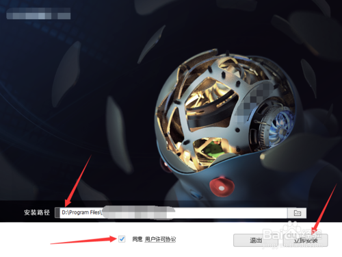 点一下安装路径变为可编辑状态,将首字母C改为D,然后勾选我同意用户许可协议并点击立即安装。