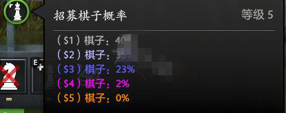 棋子分类:通过购买棋子时的花费,以及招募所需等级分为5类棋子。