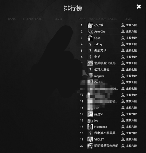 完成5场比赛就可以显示天梯段位了,秒退视为失败。天梯段位等级有士兵-骑士-主教-堡垒-国王-王后,王后是最高段位。