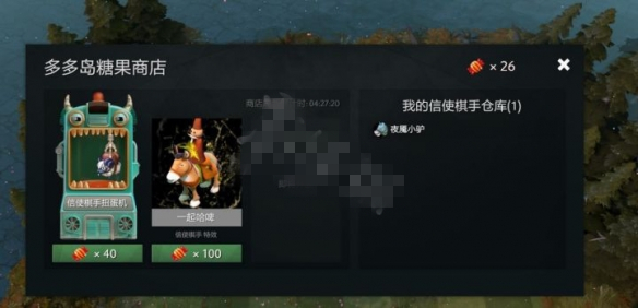 最右侧是信使棋手仓库,玩家通过每日的对弈,可以获取不定数目的糖果(每日上限为10个)使用糖果可以换取信使棋手皮肤和特效,分别需要消耗数量不等的糖果。