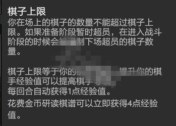 你的棋手等级决定了你在场上最多可以上多少个棋子,购买“研读棋谱”可以提升你的经验值,经验值满了就会升级,棋手最高等级为10。