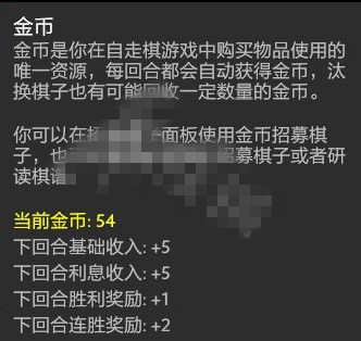 1.存利息。一般把金钱控制在50金币以上,每个回合都能有充足的可供使用的金币(回合奖励5,利息收入5)。无论是招募棋子还是研读棋谱都可以让你扩大优势。如果金币不够充足,每次招募棋子都慎重考虑。