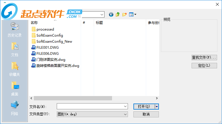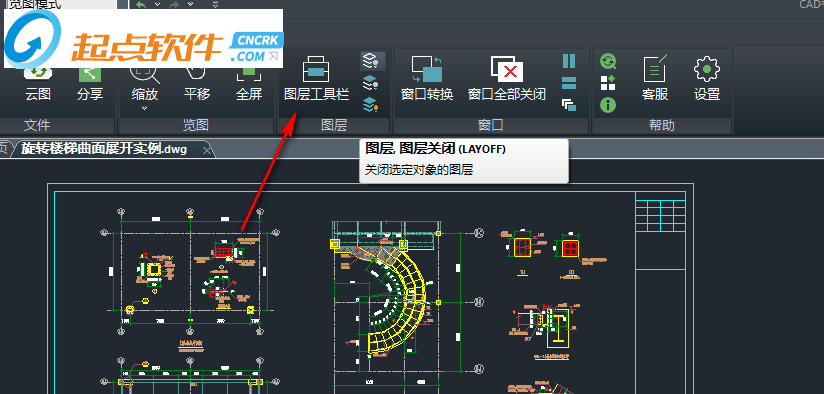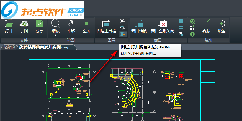 3、如图所示,点击打开,进入图纸查看界面,可以选择打开dwg图纸,小编打开“旋转楼梯曲面展开实例.dwg”
