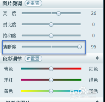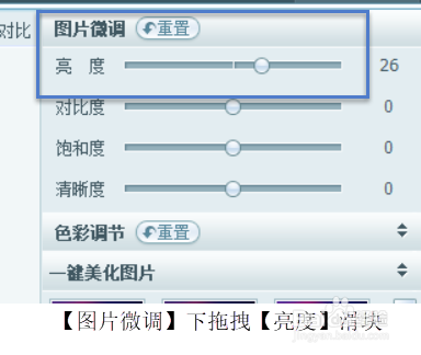 在软件编辑框中【图片微调】下拖拽【亮度】滑块,调整图片的“亮度”操作图片步骤如下。