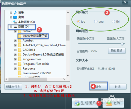 单击“生成图片”按钮,弹出“选择要保存的路径”对话框,设置保存位置后点击“确定”按钮。操作图片步骤如下。