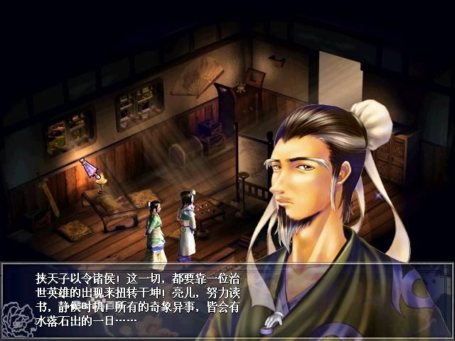 诸葛亮离开隆中驰骋天下的同时,两位奇特的女孩也陪伴在他的身边。享誉大江南北的乔府绝色--小乔,天下第一聪慧的神秘女子黄英。白云苍狗,世事浮沉。诸葛亮和两位女孩之间的剪不断理更乱的缠绵感情、爱恨纠择,将会根据玩家不同的选择,产生不同的结局。