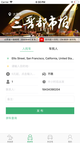 拼车:新时代新生活的产物,在人多车多的现世纪,不妨一起来体验拼生活,让出门不再发愁回家不再拥挤,路途不再孤寂。