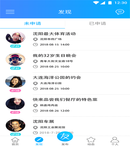 认认app,这是基于GPS定位功能,寻找附近邀请的APP。发布者一键就可以发布招聘需求,比如说标题,需求,位置,时间,性别等等,