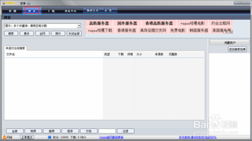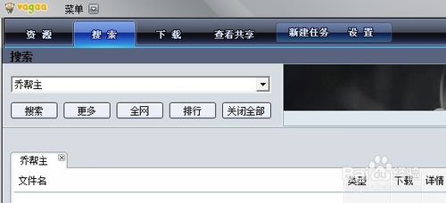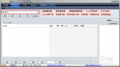 vagaa怎样搜索及共享资源设置好网络接入方式及昵称之后,点击上方【搜索】功能按钮进入搜索界面,可以在搜索输入框内搜索自己感兴趣的内容,如下图所示。