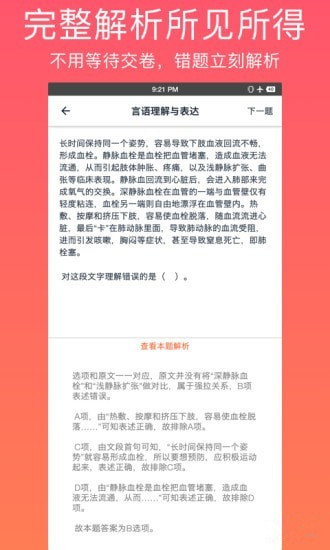 完整解析所见所得,不用等待交卷,错题立刻解析