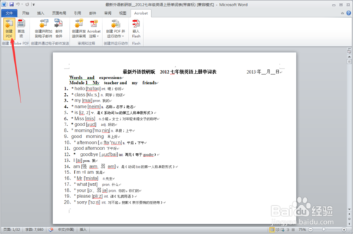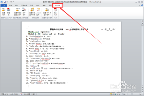 Adobe Acrobat X Pro PDF文件加密操作说明打开需要加密的文档,这里以Word文档为例!