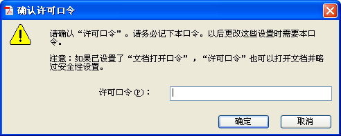 进入“确认许可口令”界面,再次输入打开文档口令,输入后点击“确定”