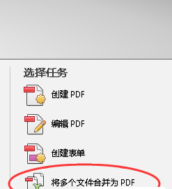 第二步,打开软件进入软件的主页后在“选择任务”中点击“将多个文件合并为PDF”。