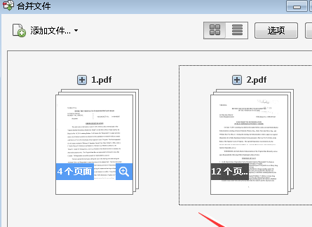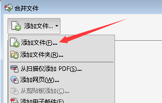 第三步,点击“将多个文件合并为PDF”后出现如图所示的窗口,点击如图所示箭头所指之处的“添加文件”。