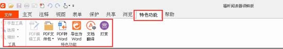 福昕阅读器与福昕阅读器领鲜版有什么区别?但是在福昕阅读器领鲜版中,我们可以在福昕阅读器基本版本功能之外,很容易找到特色功能菜单,点击进入就能看到“PDF编辑工具”和“导出为Word” 这两个功能按钮。
