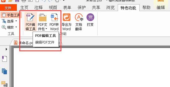 点击“特色功能”,然后如图所示,点击“PDF编辑工具”。