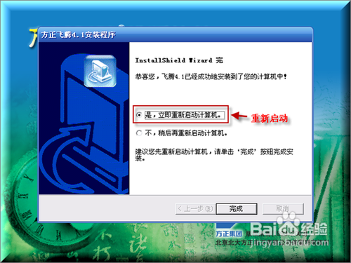 重新启动计算机即可完成方正飞腾4.1的安装。