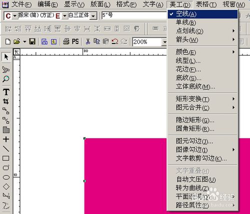 选中该长方形,按下“Alt+D+A”键,或在美工——空线中,去掉边框线。