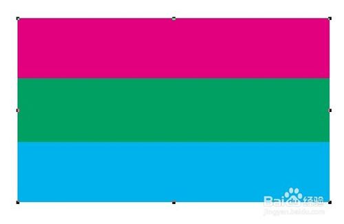 再次选中该长方形,使用快捷键”Ctrl+C“、”Ctrl+V“完成复制,并将其颜色设置为青色(C100),然后向下移动使其一半置于品红色长方形之上,两长方形相交的部分呈现绿色。按下Shift键的同时选中两长方形,按下F4键合并块。
