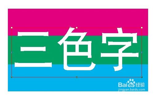 输入文字“三色字”,按下F6键(或ctrl+F)将其颜色设置为白色,并调整好大小