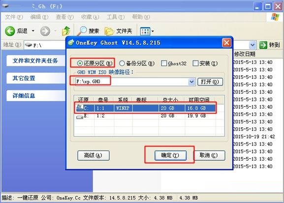 2、双击“安装系统.exe”打开OneKey ghost装机工具,选择系统所在位置C盘,确定;