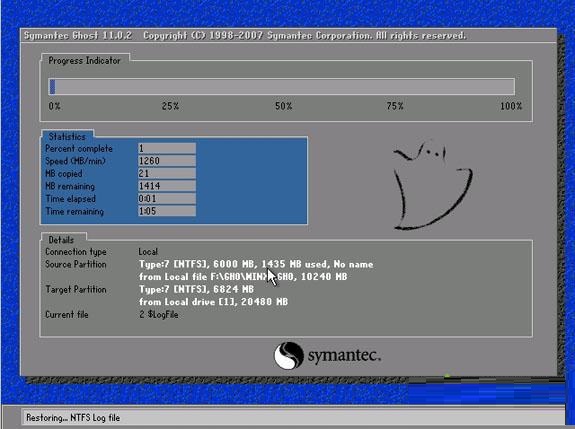 4、完成后电脑自动重启,开始重装xp纯净版系统;