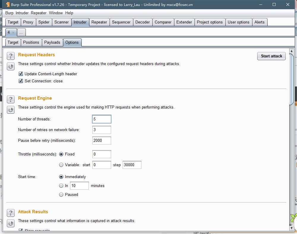Options 是 Intruder 最后一个模块,他的功能是线程等功能的设置。