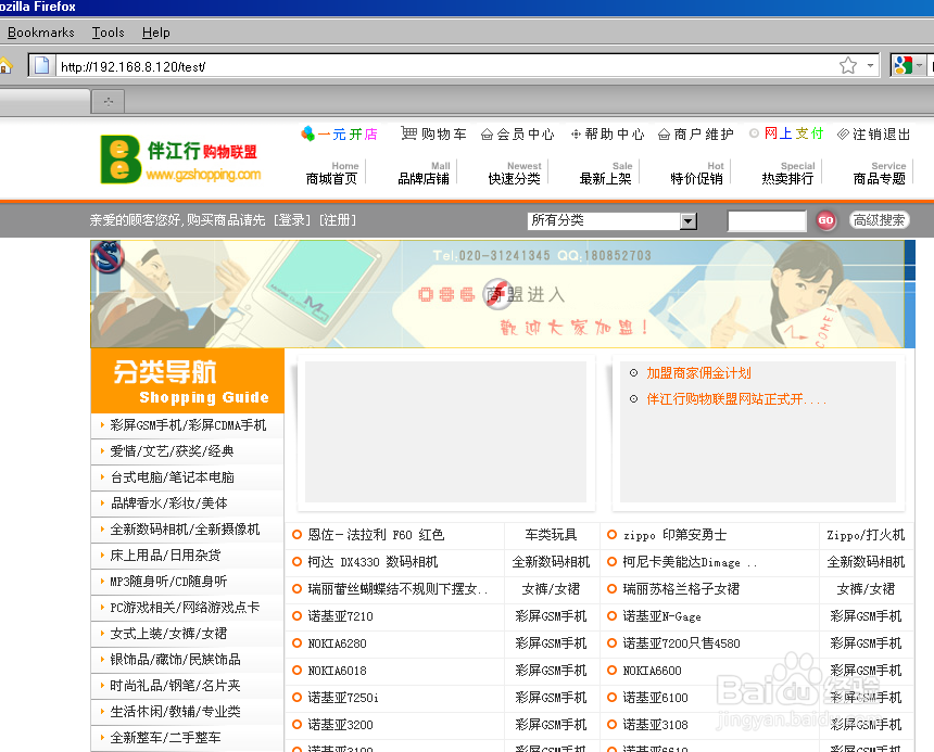 下载该程序的源代码,然后在本地部署以便测试。我本机的IP地址为192.168.8.120,演示程序地址为 http://192.168.8.120/test