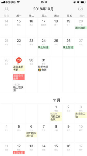 1、点击日历某一天的日期或空白处就可以立即记事;2、点击日历上的内容可以进入这一天的任务列表;