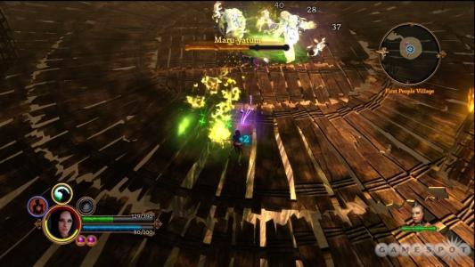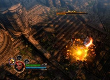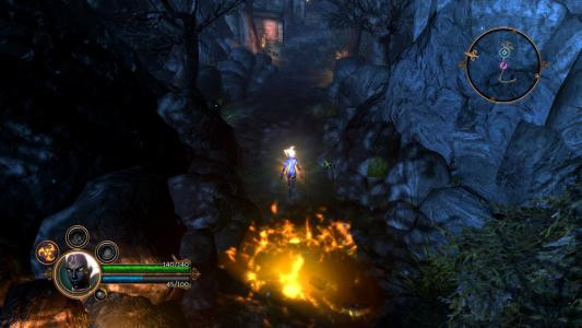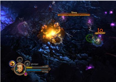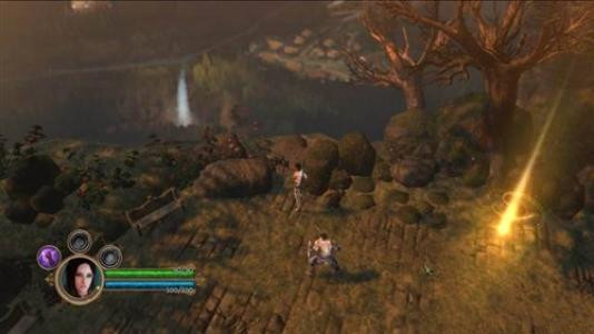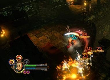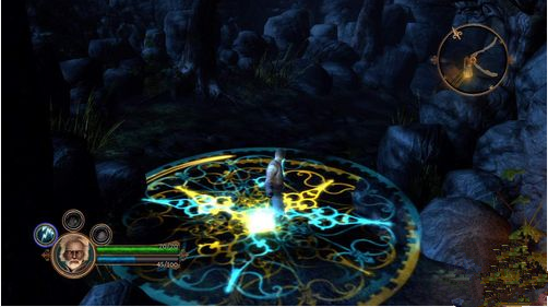 选择完角色并且看完一段角色专属剧情后便会正式进入游戏,虽然这款游戏是俯瞰式的,但是在游戏中的场景与光影表现却一点也不含糊,例如当你觉得角色太小时,你可以按下右类比钮让镜头更接进自己操作的角色,而这时你就会发现像是战士身上铠甲的金属感、法师切换成第二型态时头上的火炎,着实的都做的相当的完美。