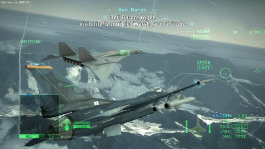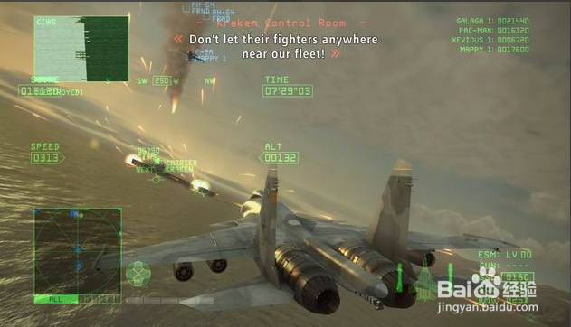 虽然提示你撤离回归线但其实此时还不如去攻击地面的ESM,不要理会敌空军,到达回归线附近时敌全军变为TGT,此时敌机已经像蜜蜂一样密集了,不用理会他们,一边小心躲避导弹一边攻击ESM,空中的ESM为E-767,只要坚持一会友军就来支援了,而且可以直接发动支援邀请,刚才追了咱们半天,现在来华丽的反击吧!本关可以说是AC史上最大规模的空战!