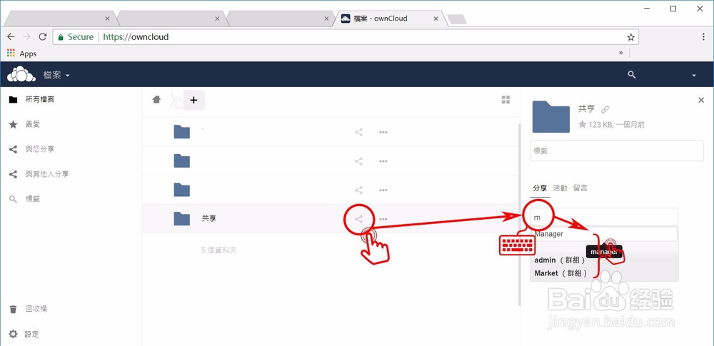 如何使用ownCloud分享文件登陆自己的ownCloud账号