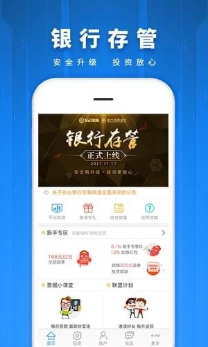 产品丰富:提供网贷、资产管理等多种理财产品,超高年化收益;50元起投,年化收益可达13%;资金安全:用户网贷交易资金由微商银行进行全面存管,平台不接触用户账户资金,不设资金池;