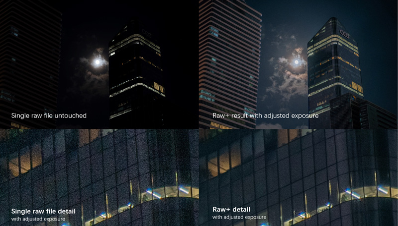 (1)把12、14bit位深的Raw原始图片,提升成为16bit的DNG图片,提供更大后期空间。(2)弱光下降噪效果明显,多张连拍的照片叠加没有“鬼影”或者模糊,特别是在场景中有运动物体的时候。
