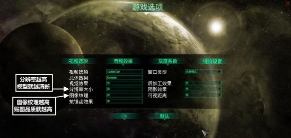 阴影一定要设成“低”,因为他是占用资源的大户。“分辨率”建议设成“1280 X 720”。