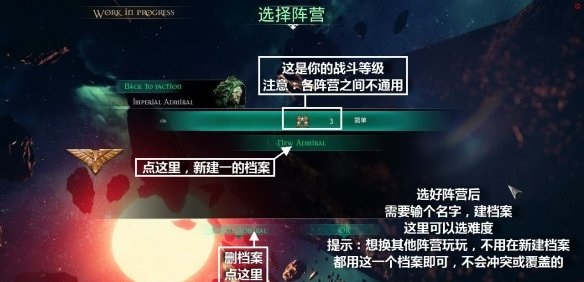 选完阵营,就是建立玩家档案的界面,操作提示已在图中标注了,就不再多说了。