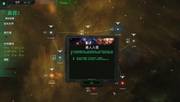 哥特舰队阿玛达2剧情战役攻略游戏的剧情战役是在星图上展开的,玩家选取有遭遇事件的星系进行战斗。
