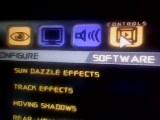 进入游戏后,在最上面选择跑锦标赛 CHAMPIONSHIP,单独跑选择赛道跑 RACE, 或者是 MULTIPLAYER 联网模式,或者是 DRIVING SCHOOL 驾驶学校,或者是 TEST DAY 测试赛车。最下面的分别是:退出游戏、选择存档、OPTIONS、看录象、确定、PLAYERS、设置游戏、REPLAYS、accept。其中选择存档又分:STATISTICS、EDIT、CREATE、DELDTE、玩家分数、编辑、创建、删除、选择赛车、车手、和你的国家。如果你选择了锦标赛模式,那么就有两个选项,一个是 NEW 新创建一个新赛季;一个是 RESUME 继续上次的存档。在 OPTIONS 设置里细分为: