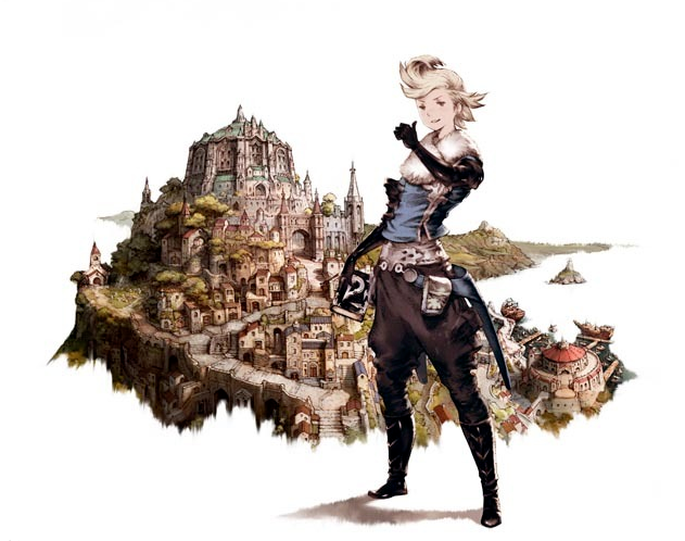 制作人浅野和艺术总监吉田早在11年就说过BDFF是融合了大量概念艺术的作品,高水平的插画在 游戏中随处可见,等拿到完成版时本人还是不禁对惊艳的画面表现很是赞叹。BDFF一眼看上去有不少FF9的影子,它自己的色彩装饰风格又接近于油画,十分突出鲜明,更加有童话的感觉了。由于精良的制作,晃动着的烛光,灯光,天空飘动的白云,城镇远处的港口这些用心刻画的细节比比皆是,但是相对来说大地图就有些粗糙。在不操纵人物一段时间后视角会自动调远,可以看到屋子或城镇的全貌,尤其是当你走出屋子当视角拉远后的景色绝对惊艳,我每进入一个新城镇总是会先欣赏下的,随后便遗憾3DS没有3D截图功能=_,=。人物设定以及动作表现贴近游戏的整体风格,只是没有经过特别渲染的建模略显突兀(远视角时,比如城镇探索时),另外转职时的纸娃娃非常能突出不同角色的个性,有些职业女性角色会非常的萌哦=v=。值得一提的是虽然游戏是非常传统的RPG,但是战斗中的一些演出还是相当华丽的,尤其是必杀技的演出。游戏在3D表现上可以说充分发挥了主机性能,并且与它自己的艺术风格很好的融合在一起。远景在3D显示下表现出了生动和稳重的协调,就像把2D下的画面重新雕刻了一般;近景既强烈又自然,这种清新舒适富有层次的感觉实在比TOA的复刻版之类纸片似的3D强出很多倍。除了3D外本作的一大创新之处还在于AR MOVIE,游戏中一些关键情节的展开(比如开头处)是需要配合AR卡片来互动的,对着立体的角色上下左右的移动相当有趣~