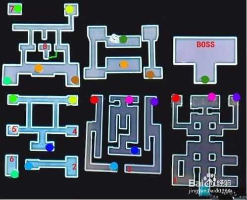宝箱:1.エーテル、2.头盔シュガーローフ、3.1200元、4.エクスポーション、5.目前无法获得需要钥匙、6.武器癒しの杖、7.1500元、8.武器炎のロッド